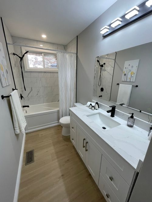 Cosmetically renovated the home to appeal to a buyer looking for something move in ready. Upgrades included new doors, handles, hinges, hardware, pot lights, paint, a new bedroom, full main floor bathroom renovation, front entry railings, and more. The home sold in a down market quickly thanks to the strategic renovations.